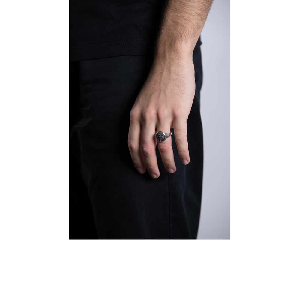 Anello unisex in argento 925 invecchiato realizzato interamente a mano.