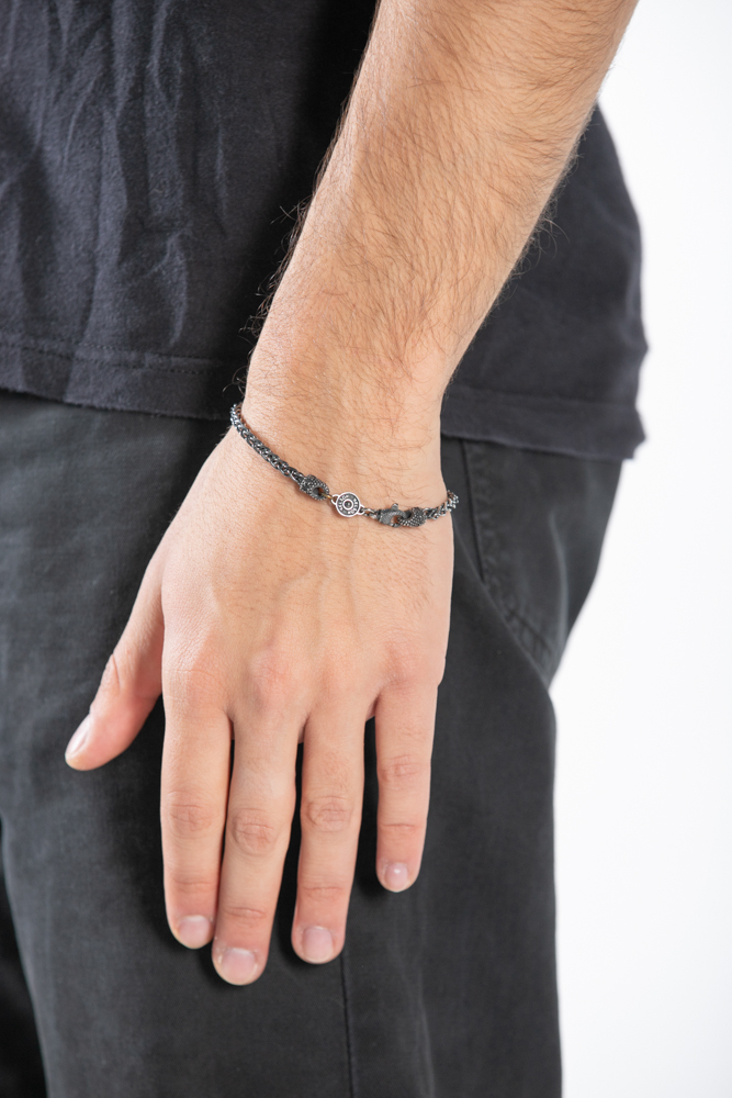 bracciale artigianale unisex in argento 925 invecchiato con chiusura personalizzata NELSON